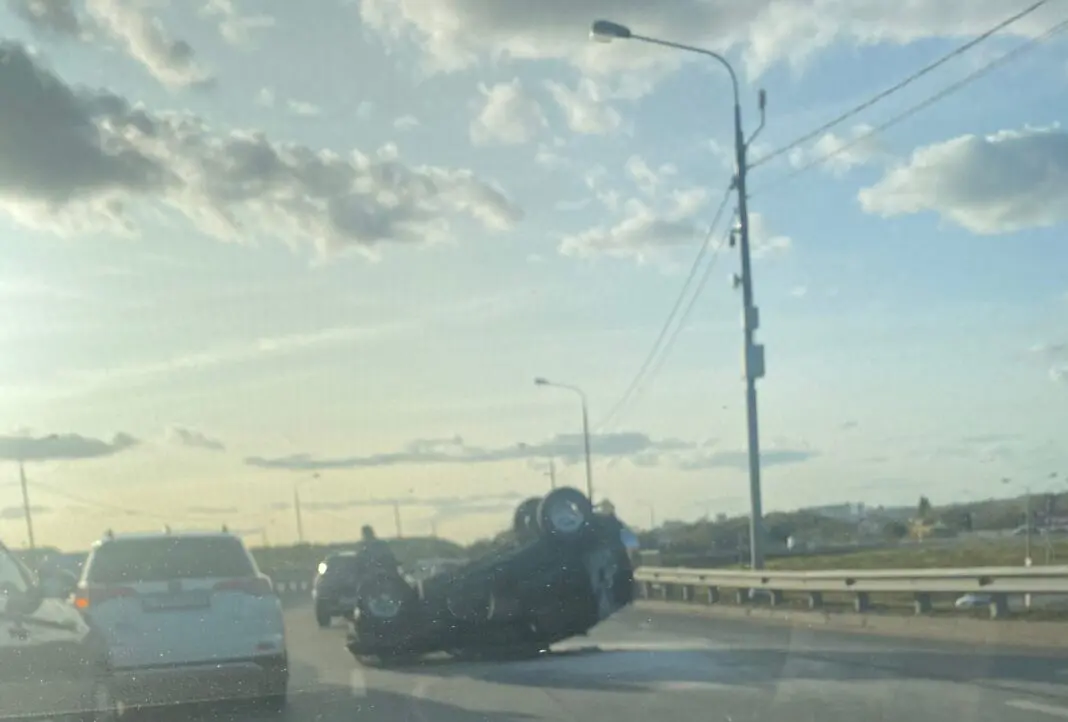 Днем 3 октября в Рязани на Северной окружной перевернулась машина.