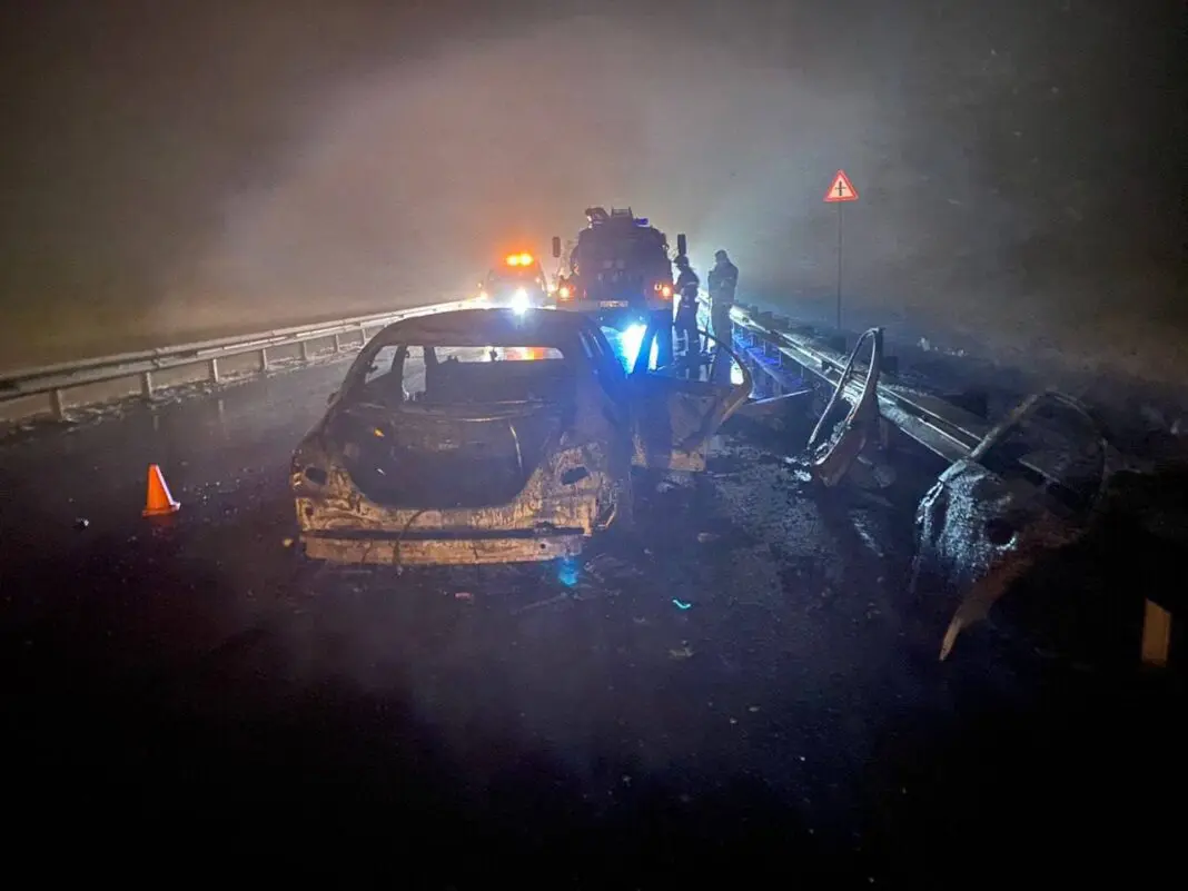 По предварительным данным Госавтоинспекции, 24 октября водитель автомобиля Mercedes-Benz выехал на встречку и столкнулся с автомобилем УАЗ. После удара машины загорелись.