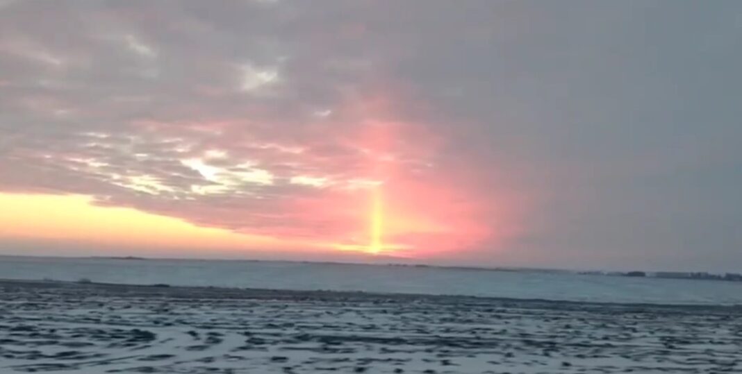 В Захаровском районе Рязанской области сняли на видео солнечный столб. Запись в среду, 29 ноября, опубликовала группа «Новости Рязани ВКонтакте».