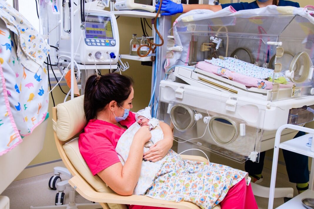 «В Рязанском перинатальном центре родители „торопыжек“ давно и успешно практикуют „метод кенгуру“. А в случае с Анечкой своё тепло и тактильный контакт ей подарила наш доктор Копанева Татьяна Игоревна. Татьяна не только прекрасный специалист, но и мама двоих детей. Она отлично понимает, что внимание и забота порой лучше любых лекарств помогают ребёнку в его скорейшем выздоровлении», — рассказала заведующая отделением реанимации и интенсивной терапии новорождённых Софья Страхова.