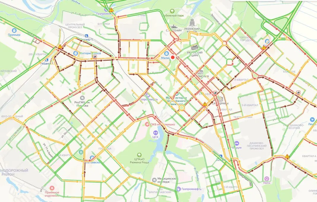 Специализированный сервис Яндекса зафиксировал 10-балльные пробки в Рязани вечером 18 января.