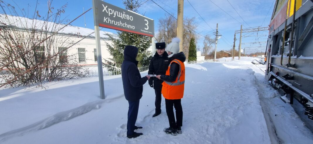 Железнодорожники совместно с сотрудниками транспортной полиции провели рейд по профилактике дорожно-транспортных происшествий и предупреждению травмирования граждан на одной из станций Рязанской области с интенсивным движением поездов — Хрущево Старожиловского района.