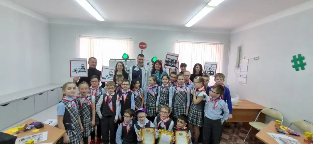 Сотрудники МЖД в игровой форме рассказали детям о правилах безопасного поведения на объектах железнодорожной инфраструктуры. Для наглядности работники стальной магистрали предстали перед детьми в костюмах, изображающие железнодорожные знаки и светофор. Во время мероприятия для ребят провели викторину с занимательными вопросами на общие знания о железной дороге, в ходе которой они отгадывали загадки о различных видах транспорта, собирали пазлы с изображением паровоза, составляли из букв слово «безопасность». В завершении мероприятия железнодорожники раздали школьникам тематические памятки.
