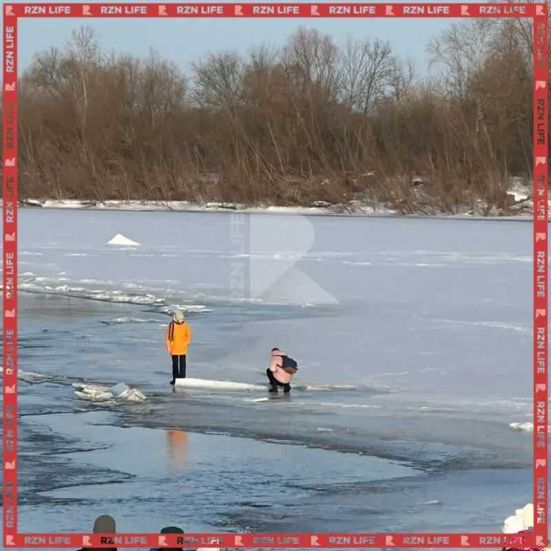 Жители Рязани заметили школьников, вышедших на тонкий лед водоема. Фотография появилась в телеграмм-канале Rzn life.