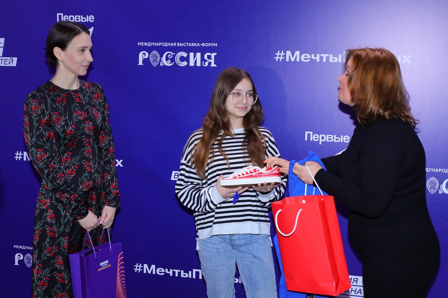Экспозиция Движения Первых и президентской платформы «Россия – страна возможностей» в павильоне №1 на международной выставке-форуме «Россия» встретила своего юбилейного 500-тысячного посетителя — 13-летнюю активистку Движения Первых из Рязанской области Викторию Молоканову.