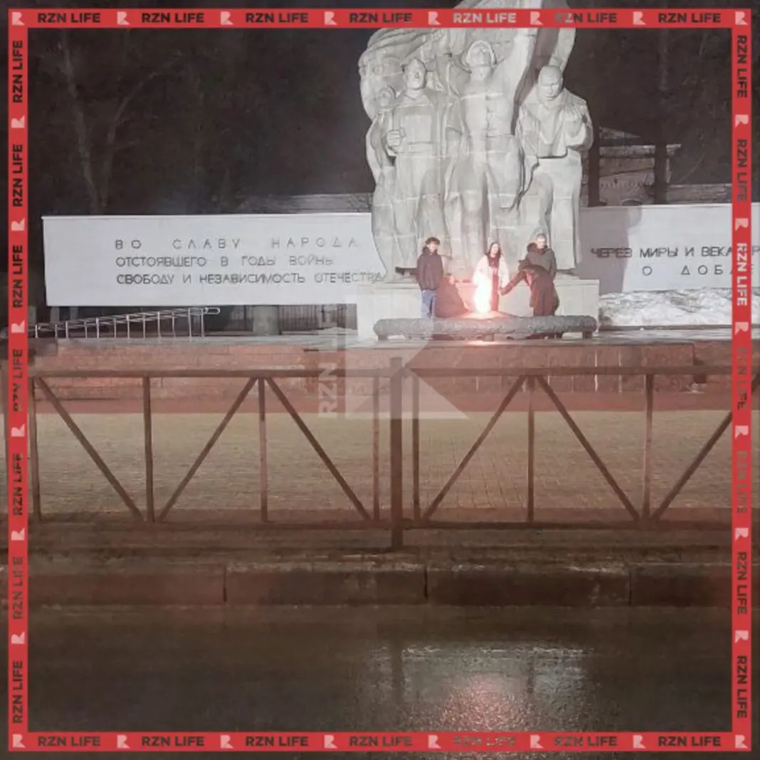 В Рязани сфотографировали подростков, которые грели руки у вечного огня на площади Победы. Снимок опубликовала группа «Rzn life l Рязань l Жизнь Рязани».
