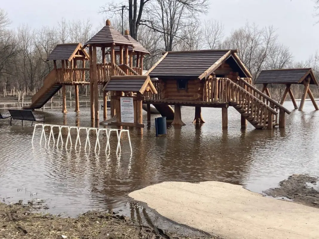 Отмечено, что кроме детской площадки, частично подтопило дорогу от Центра уличного спорта «Под мостом» до причала.