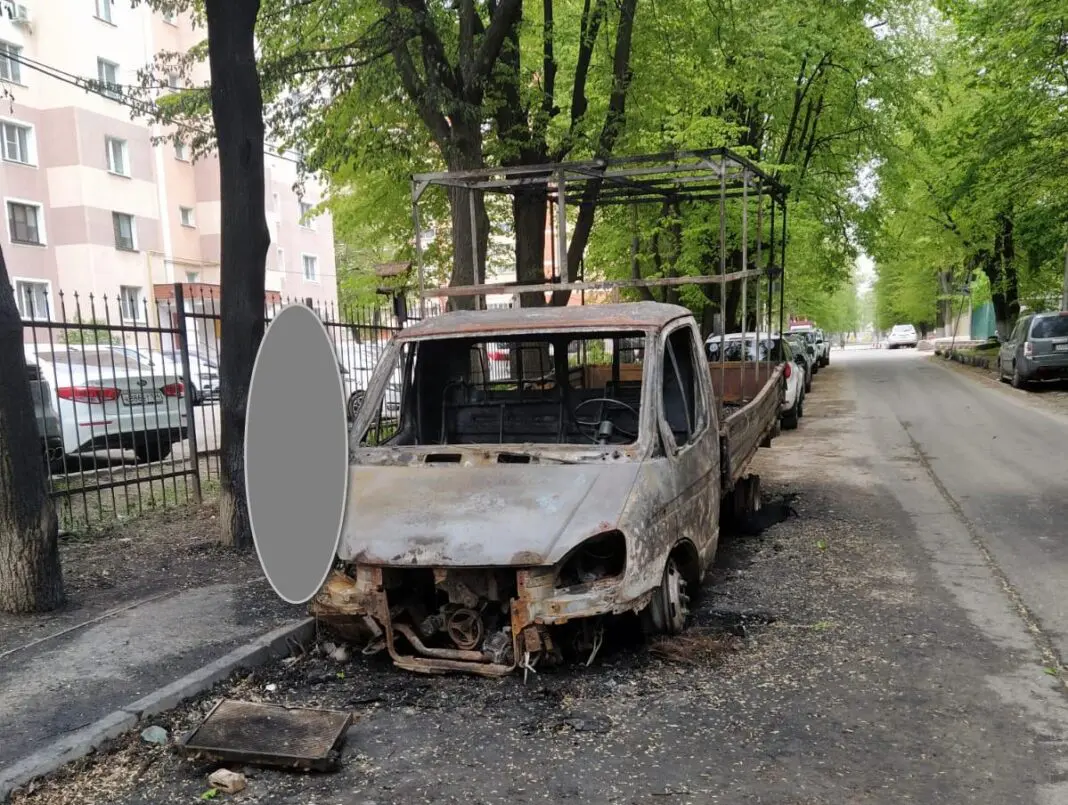 7info публикует фотографии сгоревшей машины, сделанные сегодня утром.