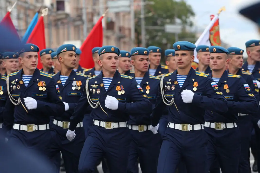 В Рязани вечером 9 мая встретили курсантов училища ВДВ, которые принимали участие в главном Параде страны. Он состоялся в Москве на Красной площади.