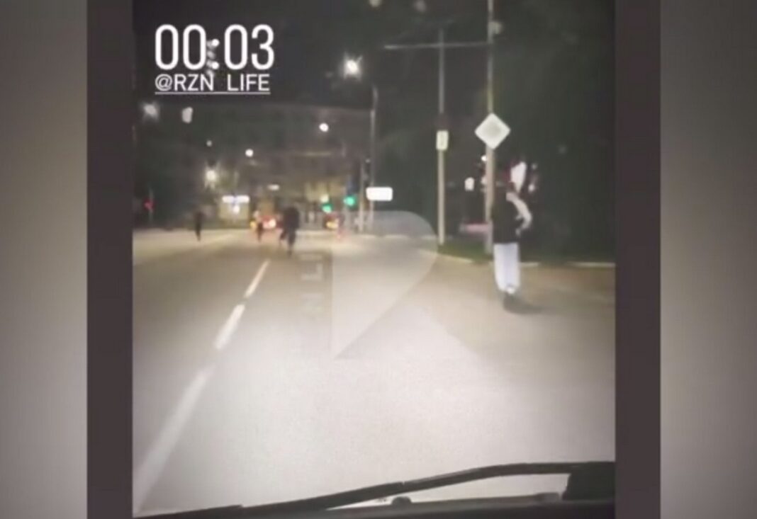 В Рязани группа парней проехала на самокатах по автомобильной дороге