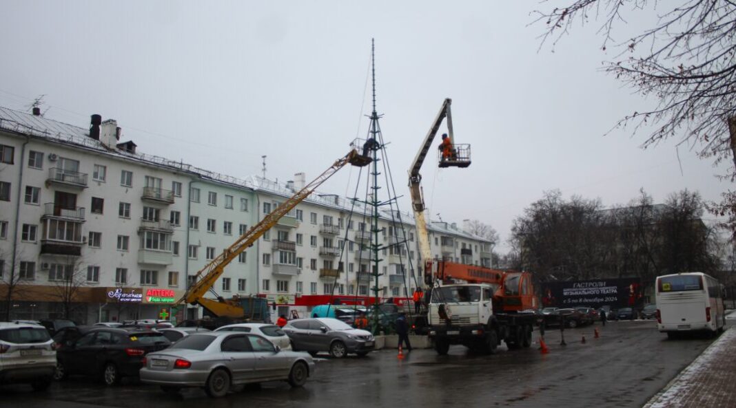 В Рязани продолжается подготовка к Новому году. Сегодня, 27 ноября, ель ставят на площади Театральной, сообщает администрация Рязанской области во «ВКонтакте».