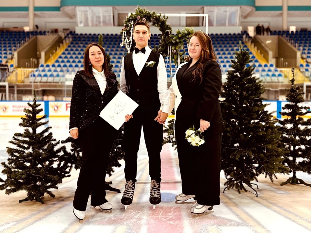Молодожены Андрей и Елизавета зарегистрировали брак на ледовой арене дворца спорта «Олимпийский». Сообщает пресс-служба ЗАГСа по Рязанской области.