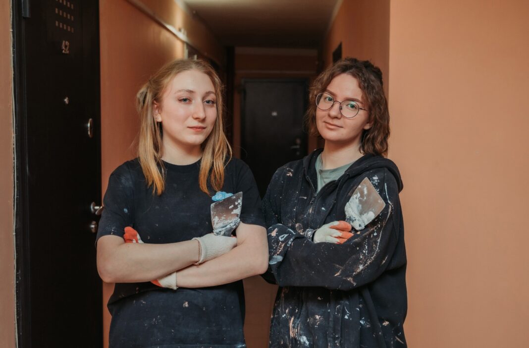 — Некоторые наши однокурсники предпочли офис или строительную площадку, а нам предложили должность отделочников в управляющей компании. Мы занимаемся косметическим ремонтом подъездов, — рассказала Олеся. — До этого у меня не было опыта подобной работы. Максимум — что-то красила. Но в компании «Зелёный сад» всему научили.