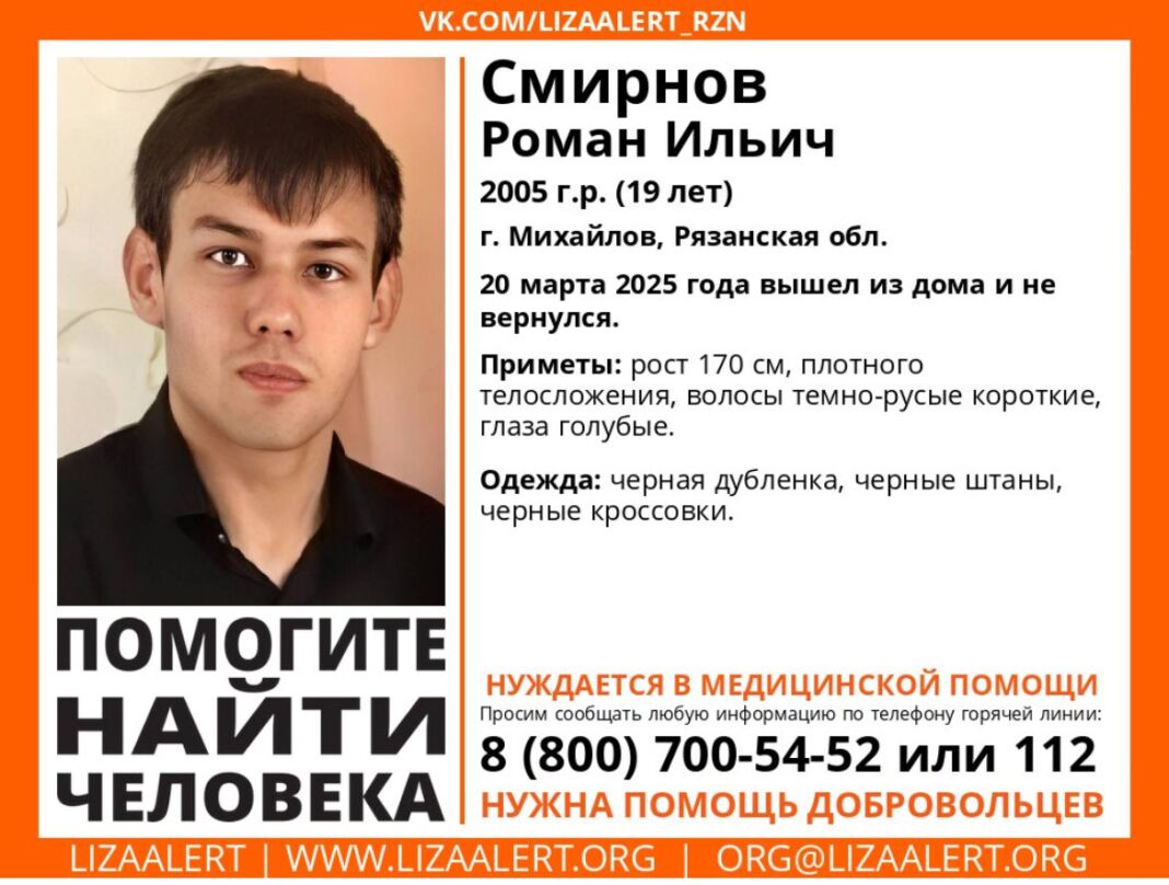 В Рязанской области разыскивают 19-летнего Романа Смирнова. Об этом сообщает поисково-спасательный отряд «ЛизаАлерт».