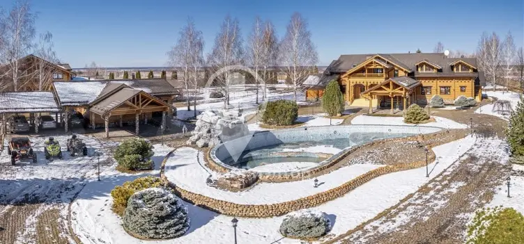 На территории расположен гараж, где хранятся автомобили премиум-класса и снегоходы. Зимой Костюшкин катается по окрестностям — так он совмещает отдых с физической активностью. Для тёплого времени года предусмотрены зоны барбекю, а для развлечений — бильярдная.