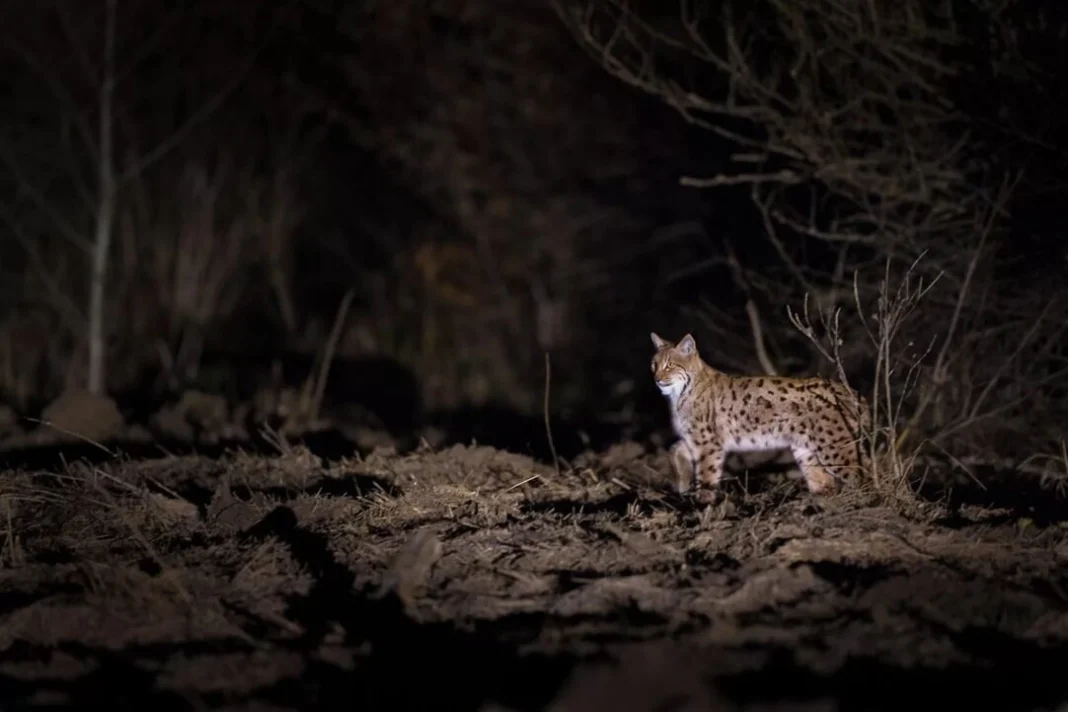 Хищника встретили рядом с деревней Ненорово. Рысь переходила дорогу ночью.