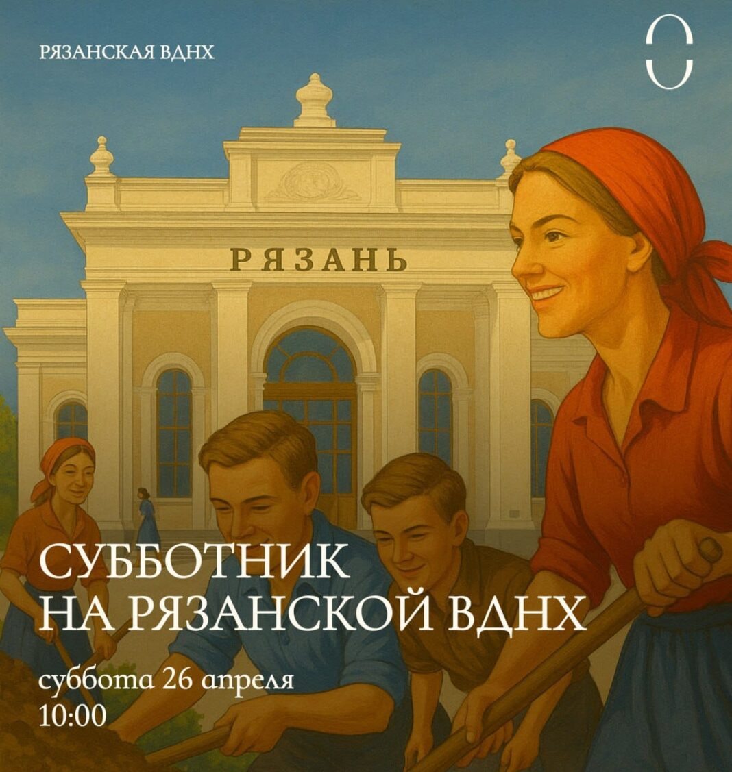 – Субботник (12+), Рязанская ВДНХ – в преддверии майских праздников Рязань активно преображается усилиями граждан посредством субботников. Рязанская ВДНХ не осталась в стороне. 26 апреля в 10:00 у павильона №1 одного из любимейших пространств города ожидаются все желающие помочь в уборке территории. В нем также примут участие сотрудники Центра развития креативных индустрий и Цифровые волонтеры Рязанской области. Перчатки и весь необходимый инвентарь неравнодушным предоставят.