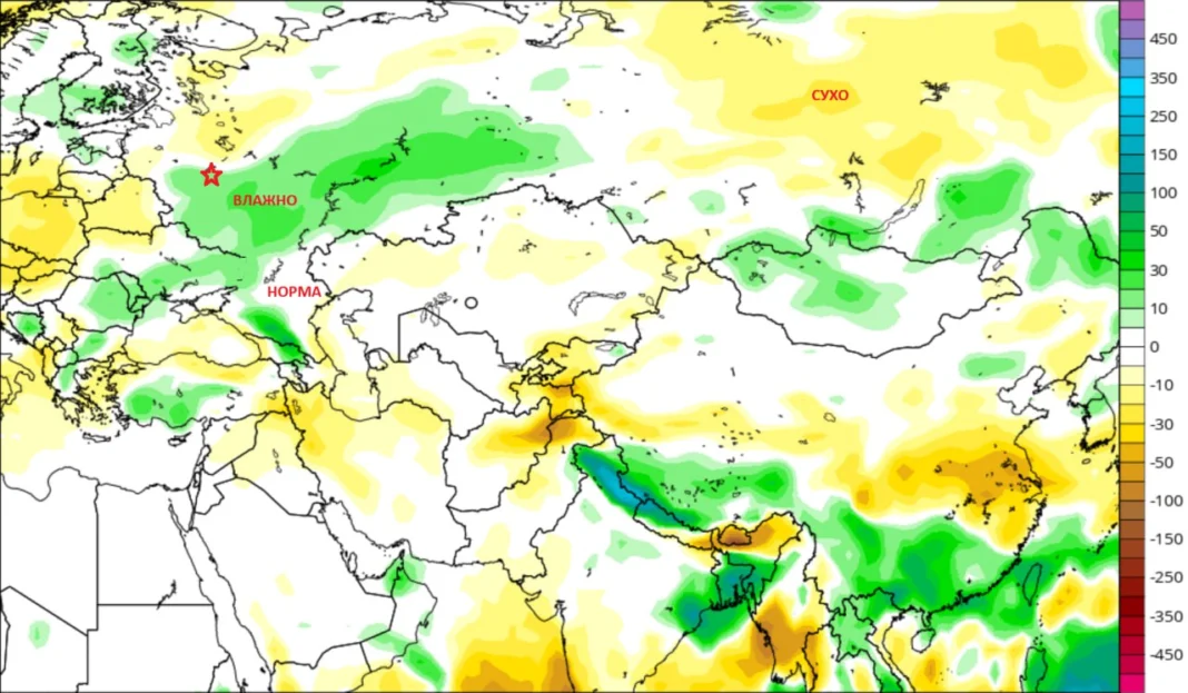 К концу месяца ожидается недобор по осадкам — дождей выпадет не более 60-80% от нормы, что указывает на большее, чем положено, количество солнечных и сухих дней.