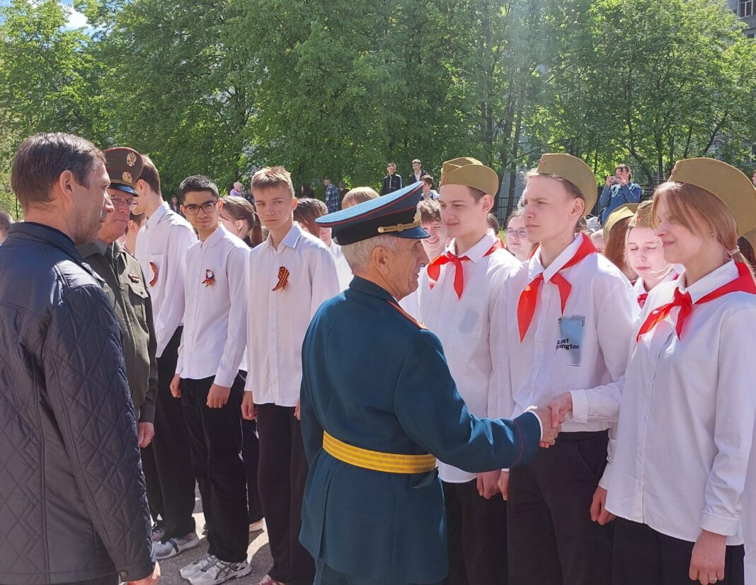 Почётными гостями праздника стали ветеран ракетных войск стратегического назначения, ветеран МЧС Виктор Акимов и председатель совета ветеранов Андрей Кузьмин. Украшением Парада стал школьный Солдатский платок, на котором расположены имена Великих Героев войны и тружеников тыла.
