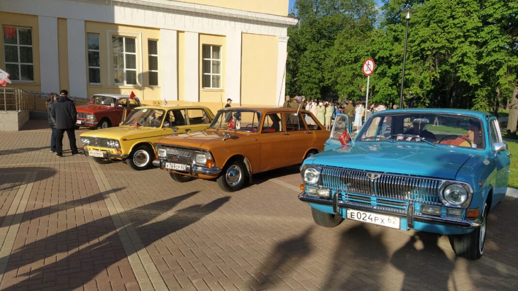 Перед филармонией также расположилась атмосферная выставка ретро-автомобилей (6+). В каждую из девяти красочных машин можно было присесть и сделать памятное фото.