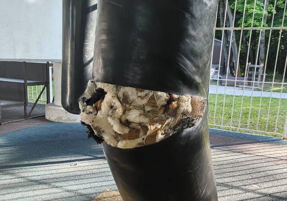 Вандала, порезавшего боксерскую грушу, обещают вычислить по камерам и принять меры.