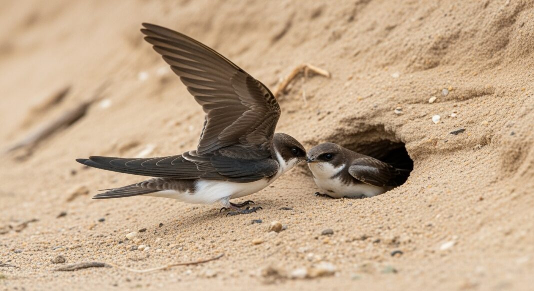 Теперь в песчаных барханах на территории стройки поселились ещё и ласточки! Известно, что пернатые выбирают для жизни только те места, которые считают чистыми, безопасными и удобными. Их гнездование сотрудники «Зелёного сада» считают добрым знаком. Эти птички приносят людям семейное счастье и финансовый успех.