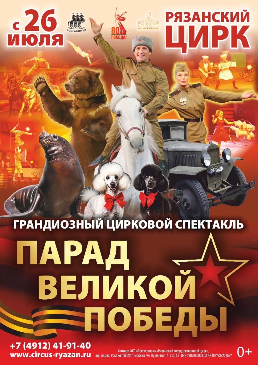Рязанский цирк пригласил на премьеру спектакля «Парад Великой Победы» 26 июля. В программе цирковое мастерство встречается с исторической реконструкцией.