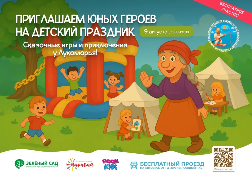 Организатор праздника, группа компаний «Зелёный сад», позаботилась о том, чтобы все детские развлечения были бесплатными! Добраться до площадки возле Борковского затона вы сможете на бесплатном автобусе, который будет ходить каждый час от ТЦ «Круиз». Ждём всех на «Рязанском Лукоморье»!