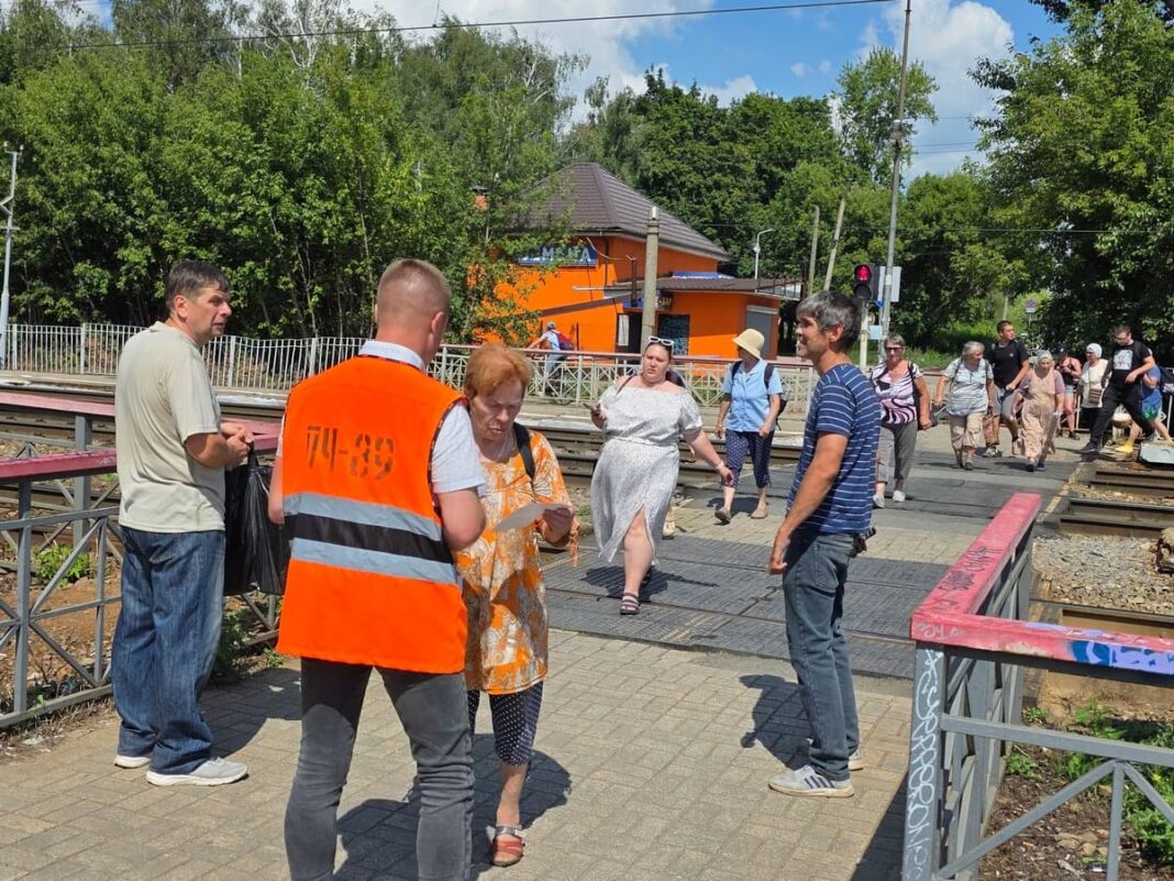Железнодорожники провели профилактическое мероприятие на пешеходном переходе, расположенном рядом с остановочным пунктом «Лагерный» в Рязани. Это место было выбрано в связи с большим потоком пешеходов: переход расположен между двумя большими микрорайонами. Кроме того, с начала года здесь произошло три случая травмирования граждан.