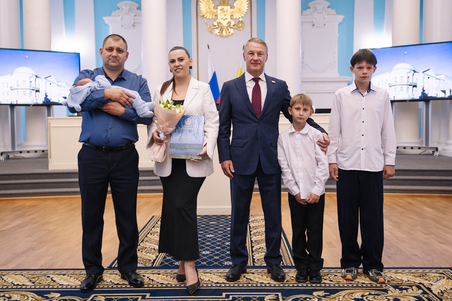 – Воспитание детей – пожалуй, самый тяжелый и ответственный труд. И вы с ним достойно справляетесь. В вашей семье уже растут два богатыря – Кирилл и Дмитрий. Отличные ребята. Родительская радость и гордость. Совсем недавно родился Матвей. А это значит, что в Рязанской области стало на одну многодетную семью больше, – сказал Аркадий Фомин. – И на федеральном, и на региональном уровне многое делается для создания комфортных условий для рождения и воспитания детей. И мы, безусловно, продолжим эту работу. Спасибо вам, Маргарита и Денис, за любовь, доброту и заботу, которые вы дарите своим мальчишкам. Такие семьи, как ваша, – настоящее достояние Рязанской области.