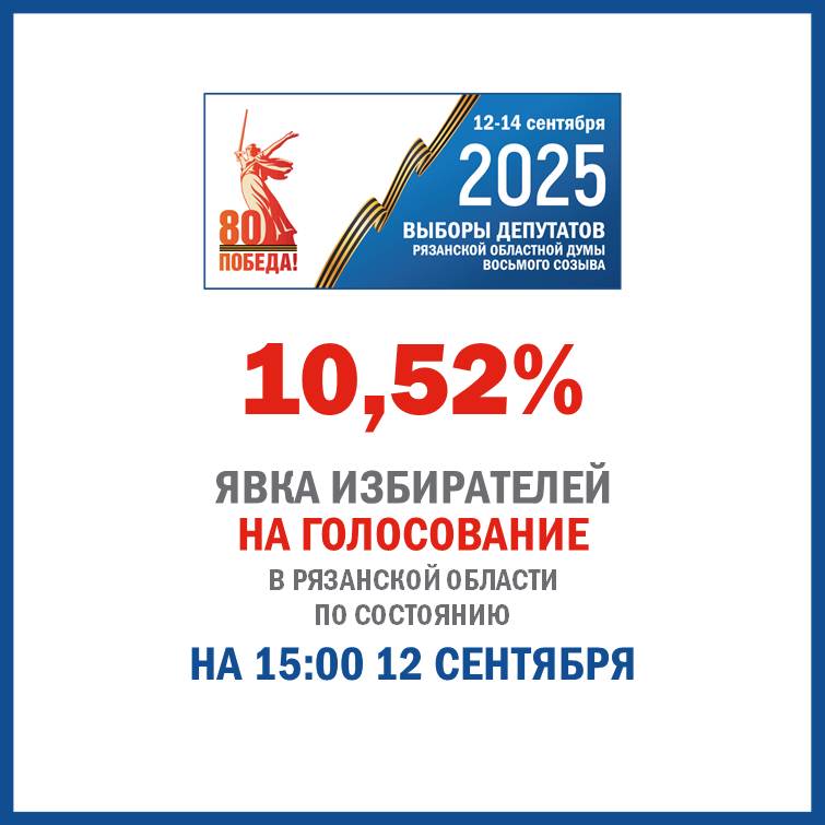 На 15 часов 12 сентября, первого дня голосования, явка на выборах в Рязанской области составила 10,52%. Такие данные привели в региональном избиркоме.