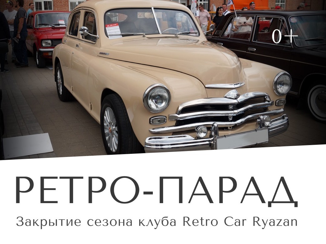 Клуб Retro Car Ryazan, объединяющий коллекционеров и ценителей культовой техники уже более 10 лет, представит ретро-парад автомобилей. На ретро-параде пройдёт финальная встреча коллекционеров в 14-м сезоне клуба. Гости мероприятия смогут по достоинству оценить коллекцию редких автомобилей, которые неоднократно становились победителями выставок, принять участие в голосовании за лучший экспонат и погрузиться в атмосферу автопрома прошлого из СССР, Америки и Европы.