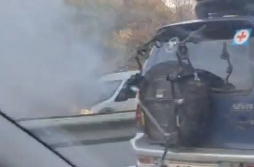 Возгорание автомобиля произошло на трассе М-5, не доезжая до села Добрый Сот. По информации очевидцев, автомобиль, скорее всего, марки Lada Largus.