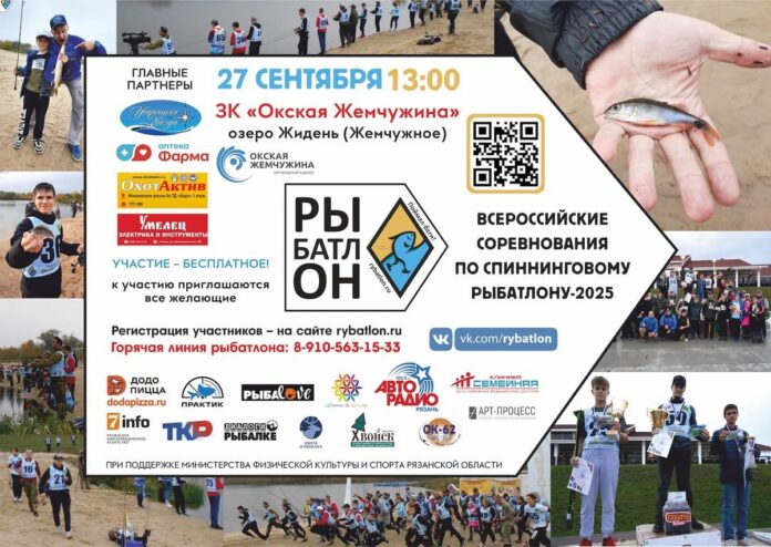 В субботу, 27 сентября с 13:00 состоится ежегодное соревнование по спиннинговому рыбатлону. Место действия – Загородный Курорт «Окская Жемчужина» в 5 км от Рязани, озеро Жидень (Жемчужное). Как всегда в рыбатлоне, участие – бесплатное, призов — очень много: от подводной камеры и снегоуборочной машины до рыболовных аксессуаров, шуруповерта и различных сертификтов.