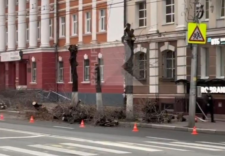 В Рязани на улице Ленина произвели обрезку деревьев, сообщает телеграм-канал «RZN LIFE».