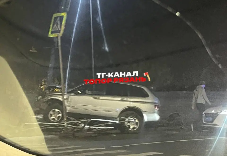 Автомобиль врезался в столб на проезде Яблочкова в Рязани. Об этом сообщает телеграм-канал «Топор. Новости Рязани».