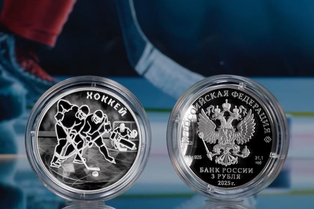 Банк России выпустил в обращение новую памятную серебряную монету из серии «Российский спорт», посвящённую хоккею. Её номинал составляет 3 рубля.