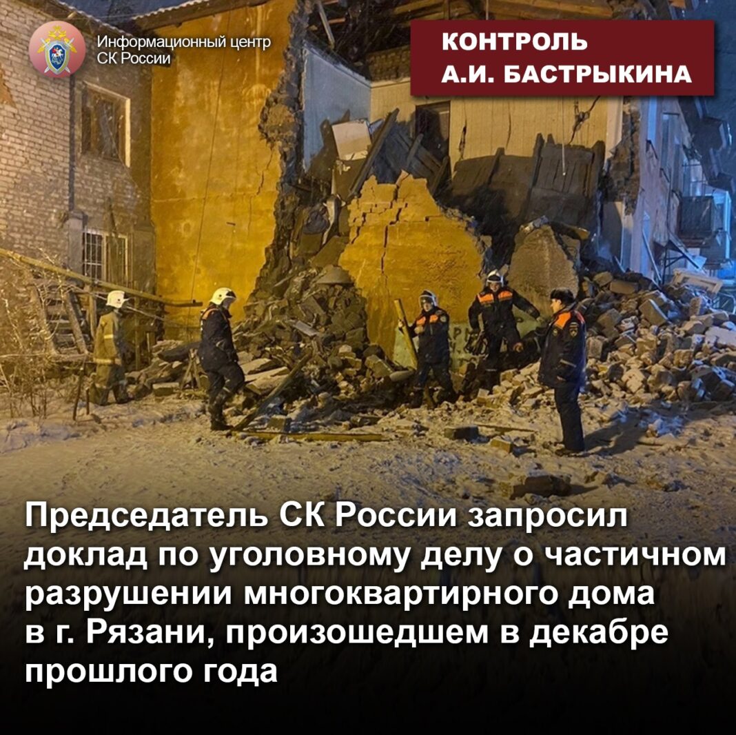 Председатель СК России запросил доклад по уголовному делу о частичном разрушении многоквартирного дома в г. Рязани, произошедшем в декабре прошлого года. Об этом сообщила пресс-служба ведомства.