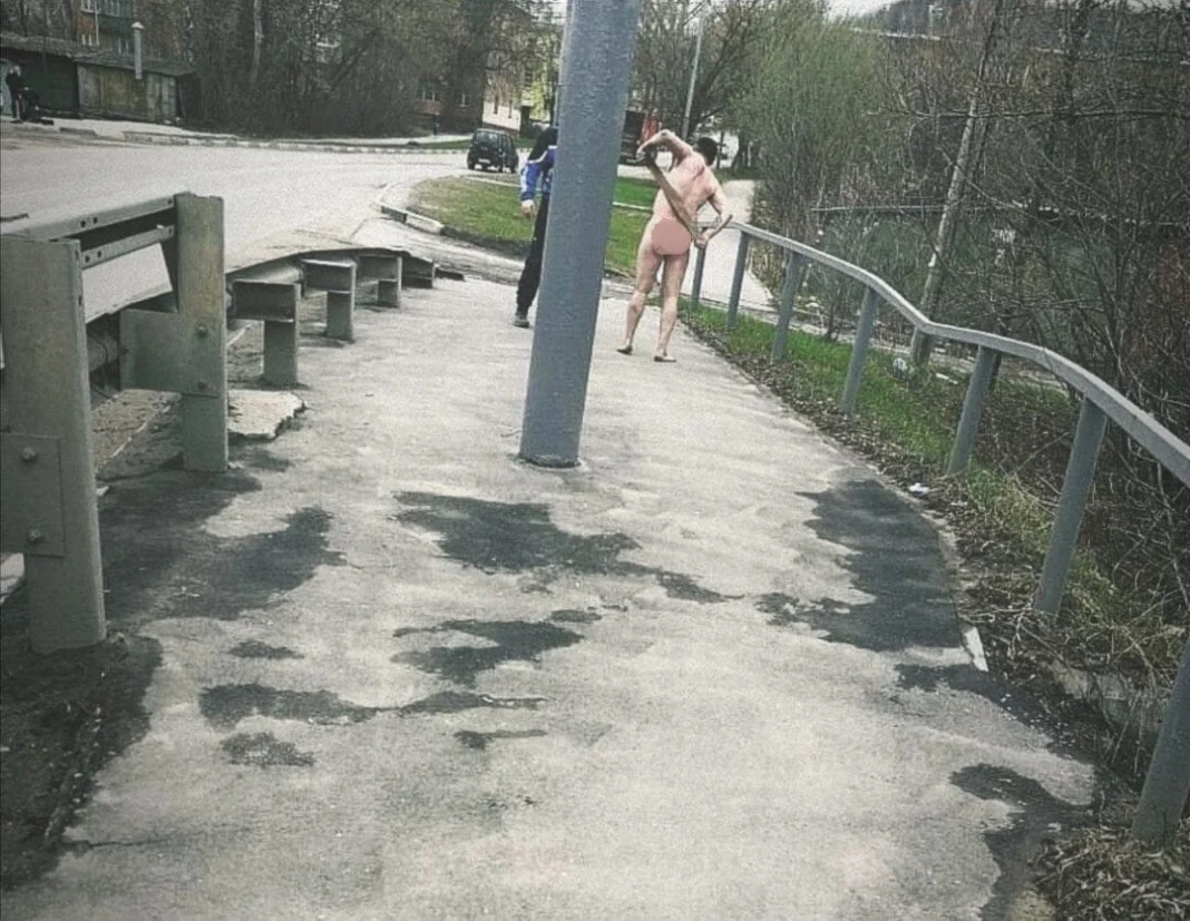 По словам свидетеля, неизвестный разгуливал в таком виде по улице Болдина. Местные СМИ сообщили, что мужчина шел из центра в сторону Мясново. В руках у него была лишь мочалка.