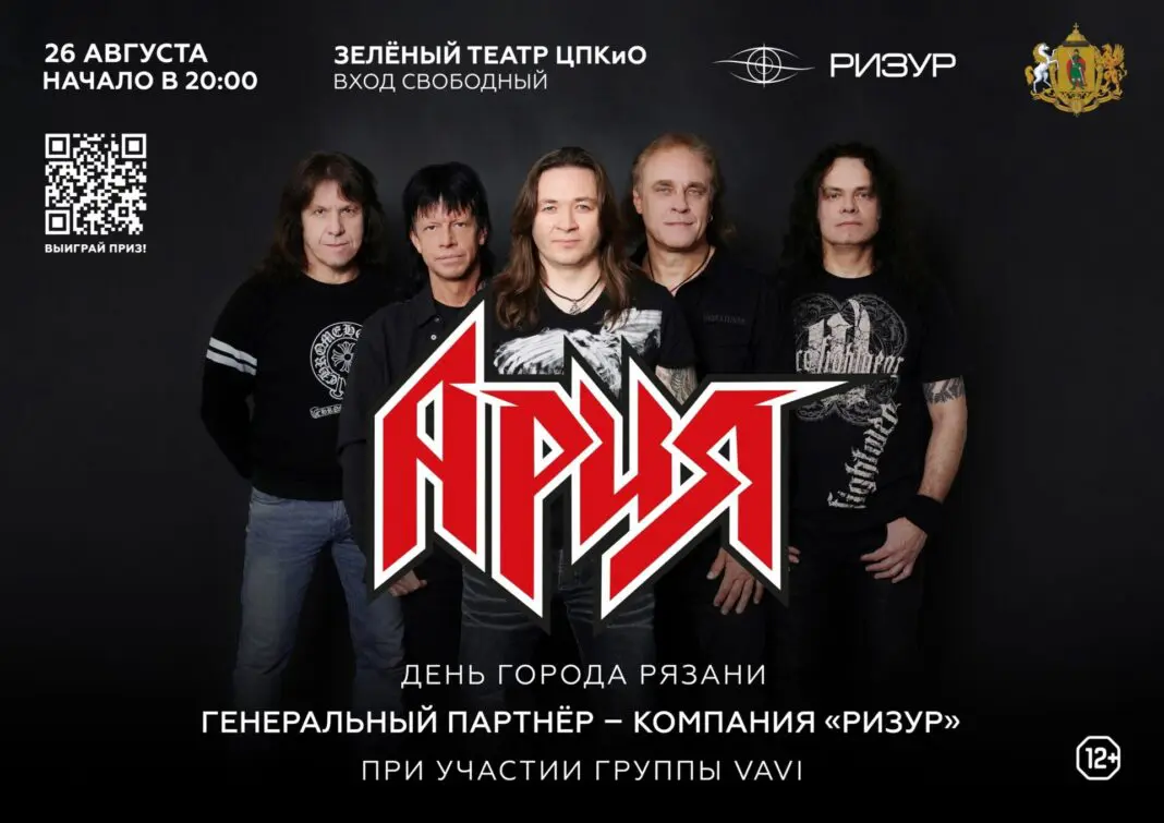 Компания «РИЗУР» совместно с администрацией города Рязани приготовила подарок для всех жителей и гостей города — выступление легендарной хеви-метал-группы «Ария». В перерыве между концертами аншлагового тура «Гость из Царства Теней» музыканты возвращаются на летнюю фестивальную сцену. В этом году в Рязани выступление легендарного российского музыкального коллектива пройдёт в рамках фестиваля «Движение». Вечер откроет группа VAVI.