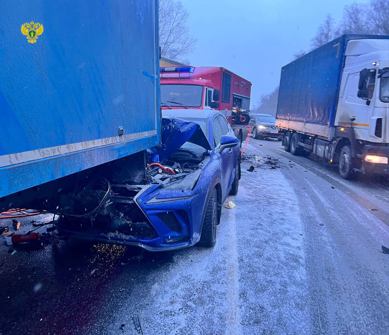 По данным ведомства, столкнулись несколько грузовиков и легковушек.