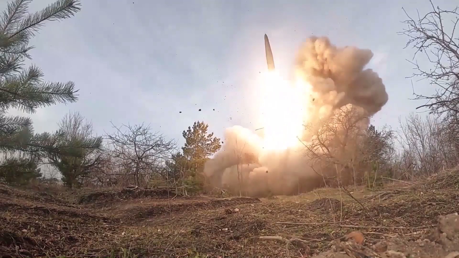 Министерство обороны РФ опубликовало видео работы расчета оперативно-тактического ракетного комплекса «Искандер» во время спецоперации на территории Украины.
