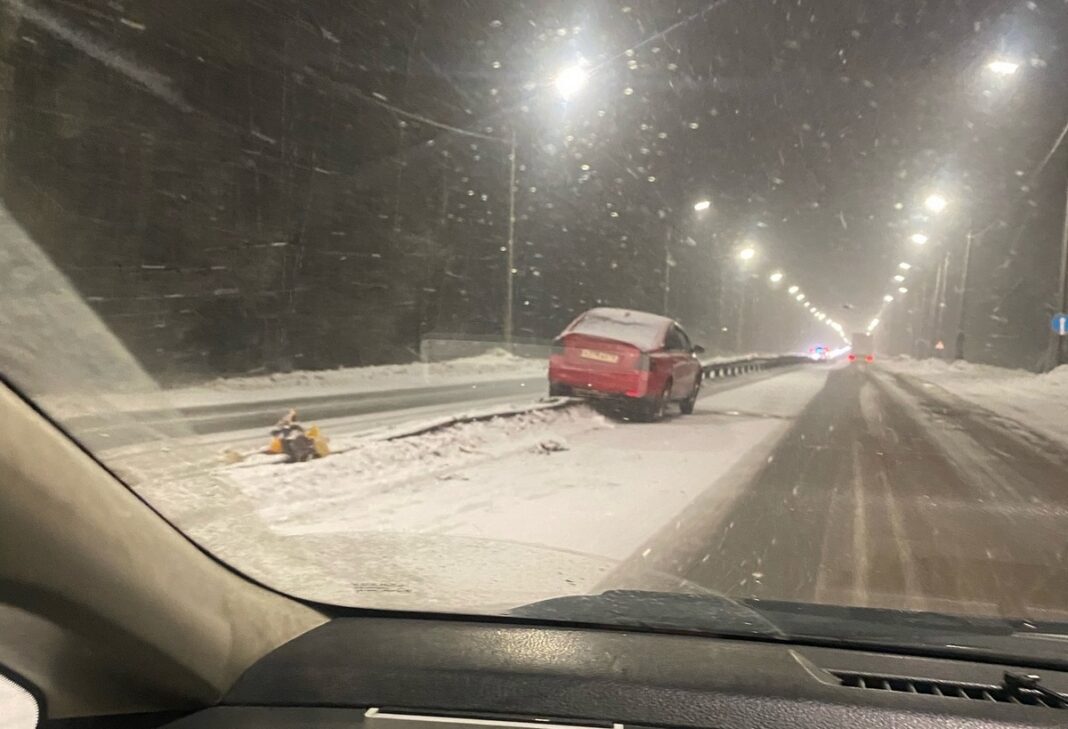 В Рязани на Южной окружной дороге на разделительном ограждении повис автомобиль. Фото последствий ДТП опубликовала группа «Подслушано у водителей Рязани».
