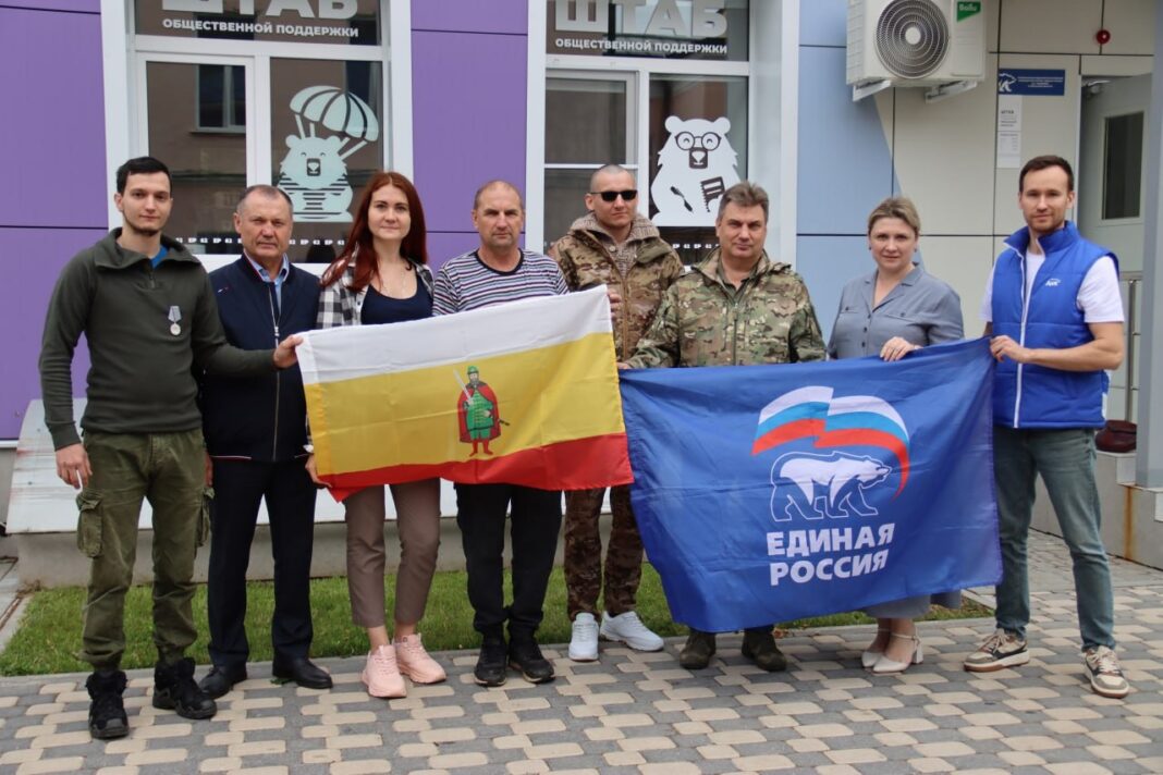 Группу проводили победители предварительного голосования «Единой России» – сенатор РФ от Рязанской области Игорь Мурог и руководитель регионального исполкома партии Юлия Феоктистова, а также руководитель штаба общественной поддержки «Единой России», депутат Рязанской городской Думы Анна Иванова, представители Ассоциации ветеранов СВО Рязанской области.