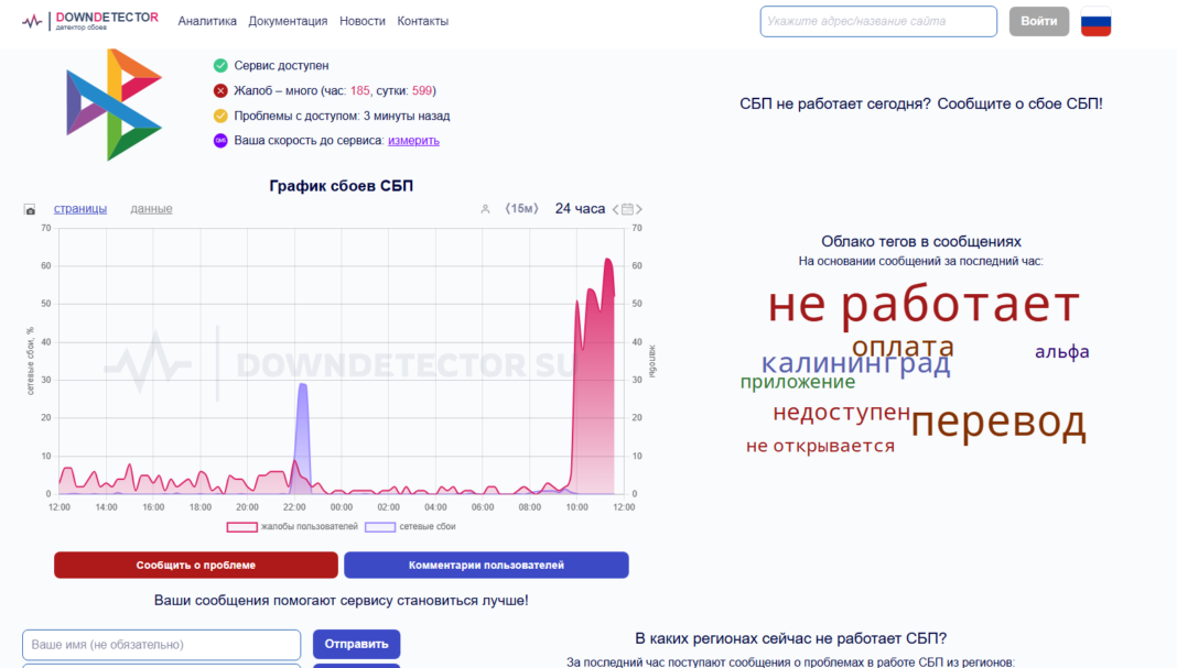 В частности, много жалоб на системы быстрых платежей — сервис либо не доступен пользователям, либо не отправляются платежи.