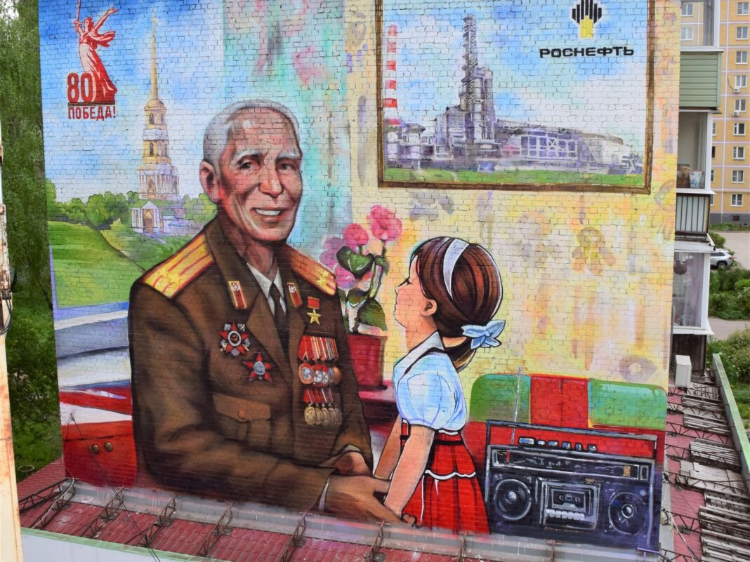 Рязанская нефтеперерабатывающая компания (входит в нефтеперерабатывающий комплекс НК «Роснефть») открыла в Рязани памятный мурал, посвящённый 80-летию Великой Победы. Арт-объект площадью 150 квадратных метров появился на фасаде жилого дома на улице Дзержинского. Композиция символизирует связь поколений и преемственность традиций: ветеран Великой Отечественной войны держит за руку девочку — символ жизни, ради которой наши деды и прадеды совершили свой подвиг.