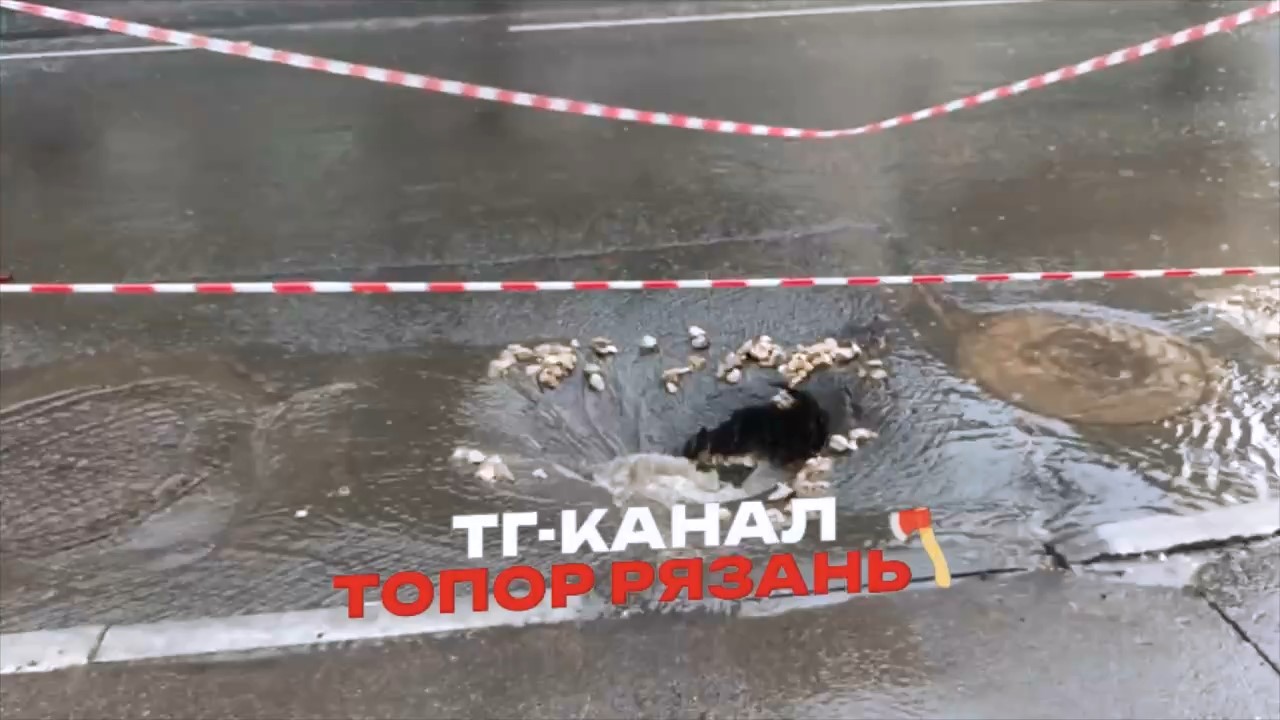 В центре Рязани провалился асфальт. Видео с места событий опубликовал телеграм-канал «Топор. Новости Рязани».