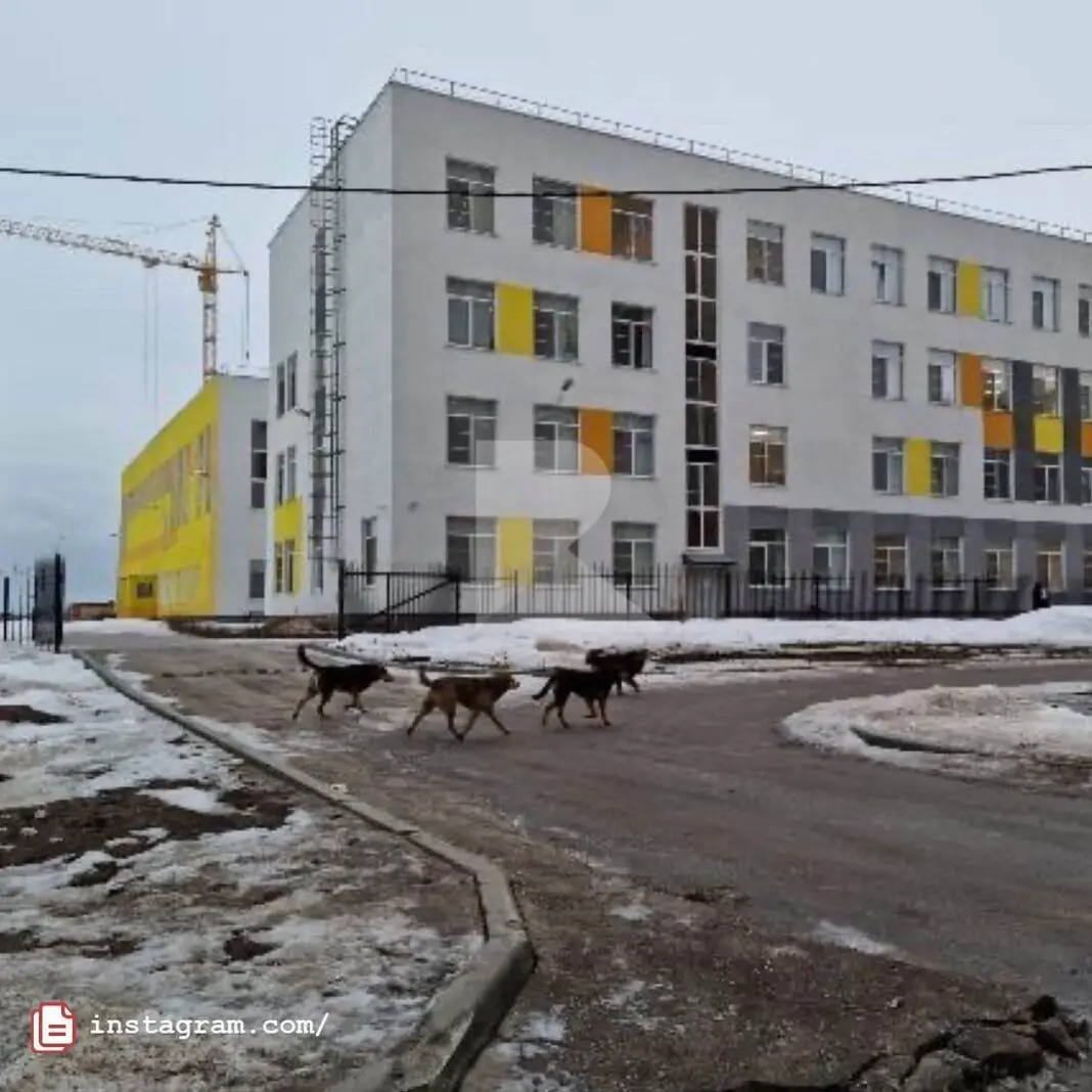 В селе Дядьково под Рязанью рядом со школой заметили стаю бездомных собак. Фото опубликовала группа RZN LIFE l РЯЗАНЬ l РЗН ЛАЙФ.