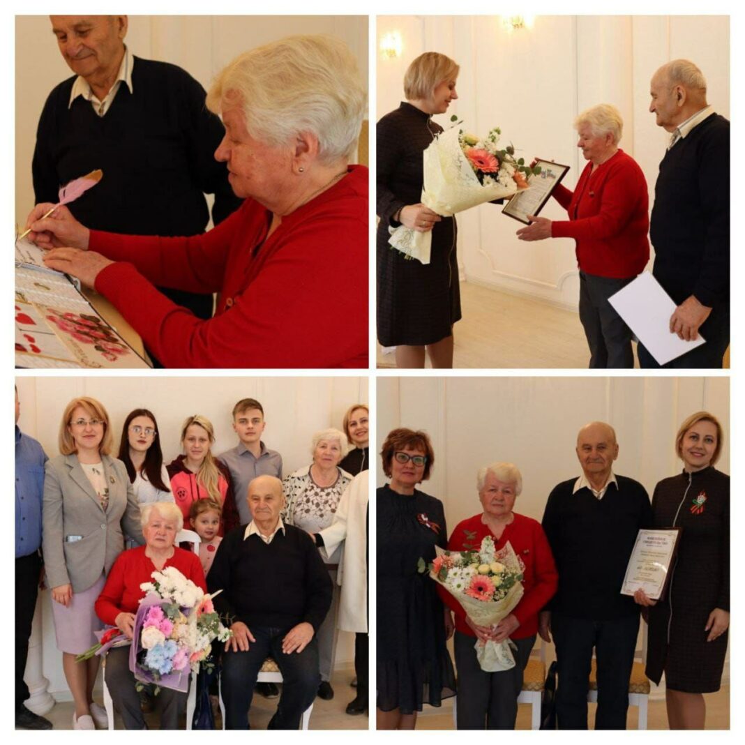 Юбилярам вручили поздравительный адрес от главы Касимовского муниципального округа И. А. Бахилова. Супруги также поставили свои подписи в книге «Юбиляры супружеской жизни».