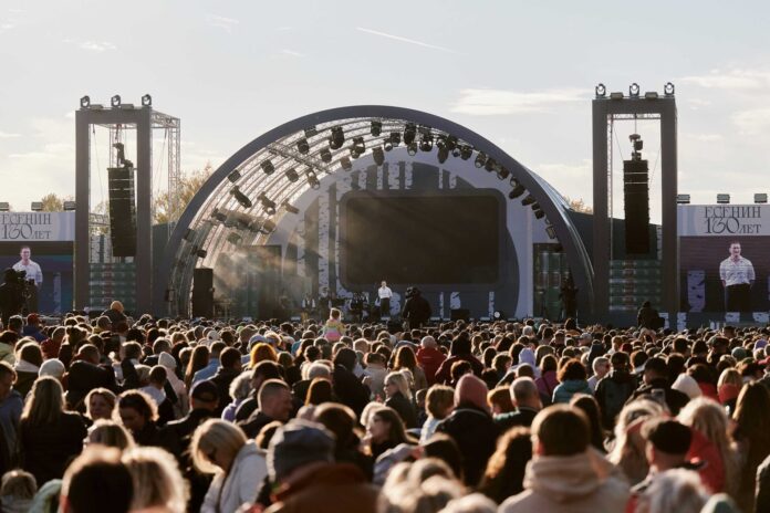 Концертная программа в селе Константиново включала спектакль с участием актера Сергея Безрукова, музыкально-поэтические выступления симфонического оркестра и актеров театра и кино.